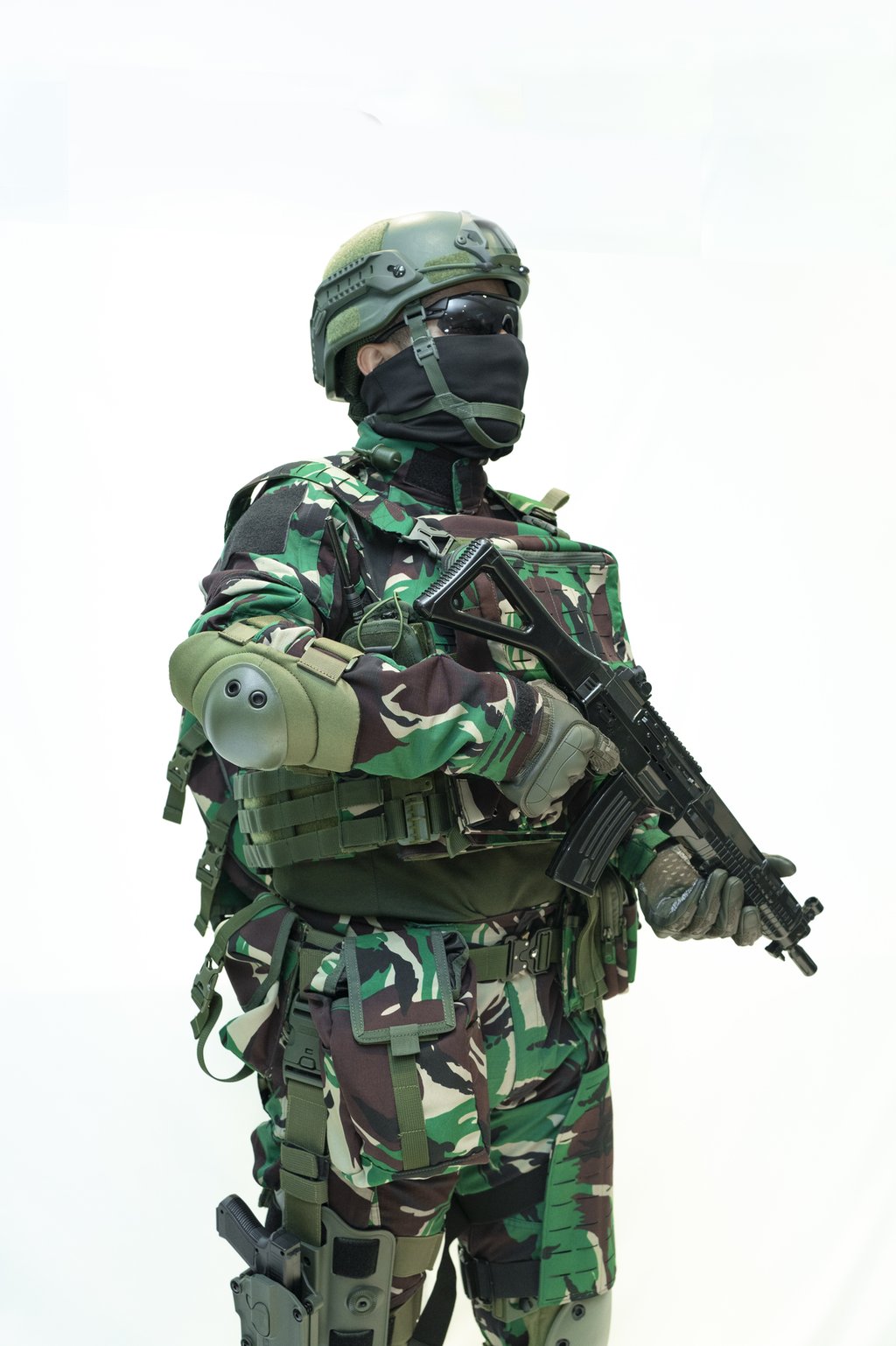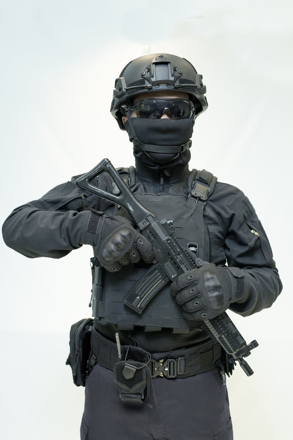 The vest is constructed from high-tensile fabric with soft armor inserts, offering protection against handgun and rifle rounds based on NIJ standards. Its MOLLE webbing system allows the user to add or remove pouches depending on mission needs. The helmet, made from impact-resistant materials, is shaped for enhanced field of vision and reduced fatigue during prolonged use.